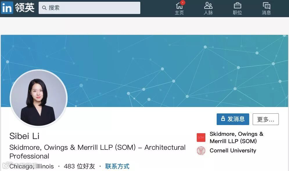 " 巴黎心跳 " 的另一位设计师李思蓓的相关信息更少。仅有的资料显示,李思蓓来自北京,本科就读于北京工业大学。和蔡泽宇一样,李思蓓随后也去了康奈尔大学,目前同样在芝加哥 SOM 工作。 根据个人领英帐号的资料显示,李思蓓在芝加哥 SOM 之前,曾在国内多家建筑设计机构实习过。