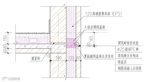 2)竖向缝塞A级岩棉保温板进行封堵确保保温性良好,外侧做法同上;