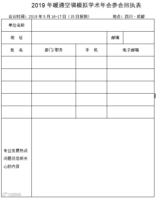 注:为更好的办好本次活动,请您认真填写参会回执并于5月10日前发送至cchvacbs@163.com
