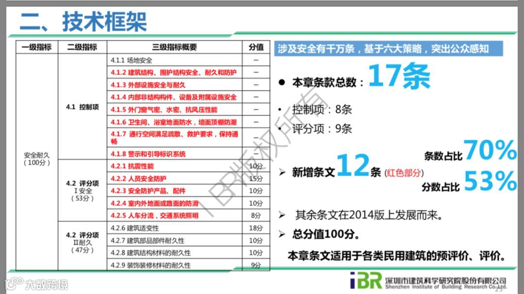 “安全耐久”章节条文总数17条,新增条文12条,占比70%。新增条目中,控制项7条,评分项5条,现就会议上介绍的部分重点新增条文介绍如下: