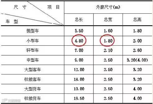 明确小型车外廓尺寸为:4800(长)×1800(宽)