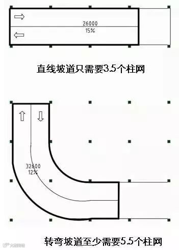 若采用曲线坡道,应注意坡道的最大坡度为12%,最小转弯半径为6米。