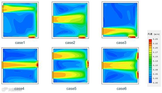 图3 6个case室内风速云图