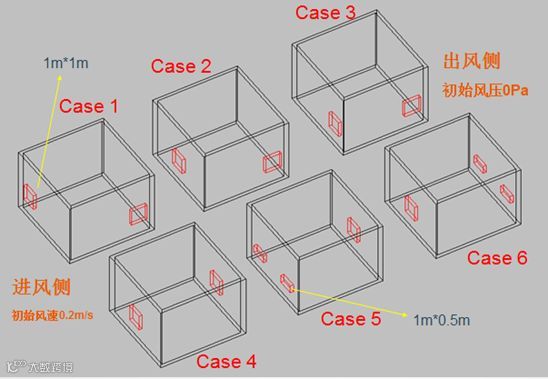 案例模型:6个房间尺寸相同、开窗位置不同,模拟计算初始条件完全相同