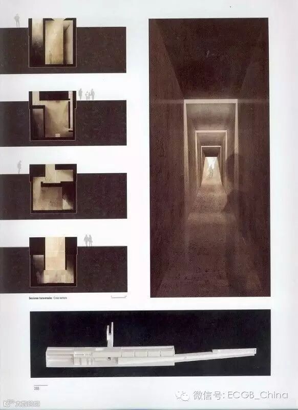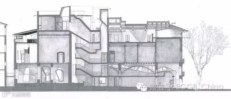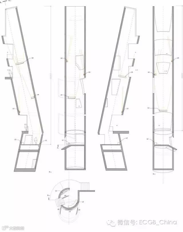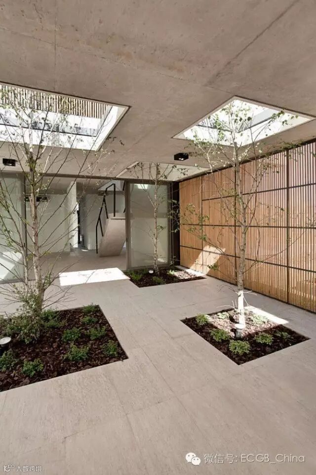 采光桶的置入不仅仅可以很大程度上解决采光问题,同时也是很常用的设计语言,可以有效的打破三明治剖面的死板与僵硬。下图有真相: