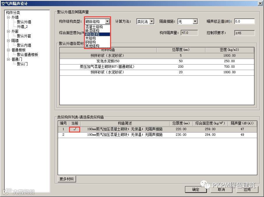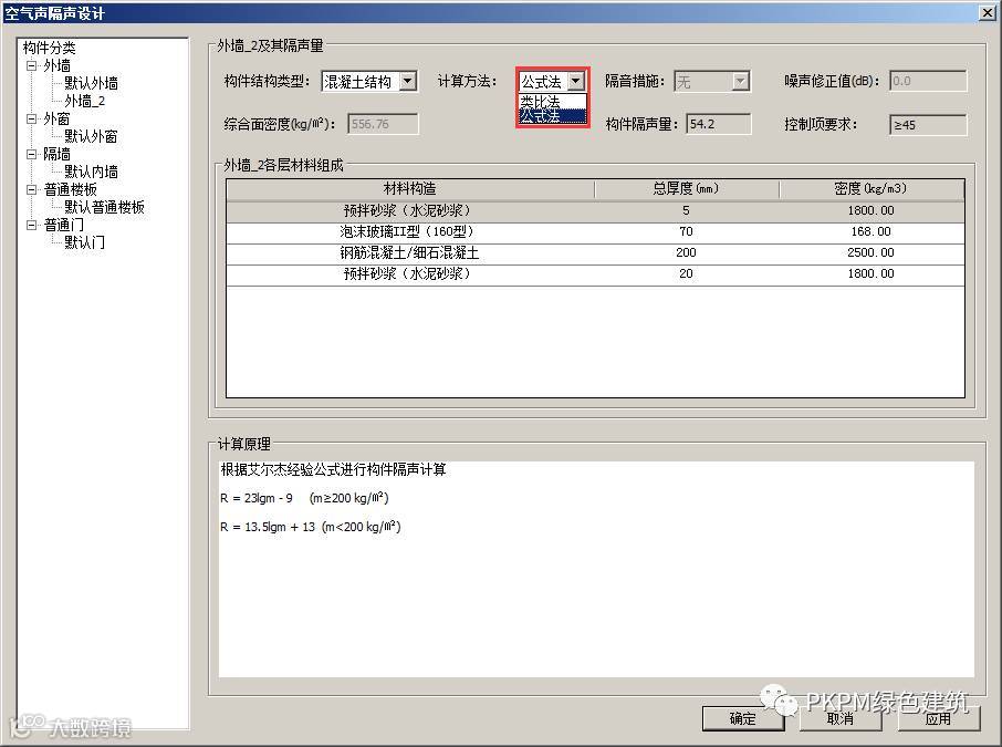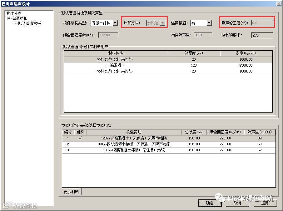 PKPM-SoundIn解决了计算建筑构件隔声的重点、难点——理论计算法与检测类比法的智能、自动选用,内置了数百种来源于国家图集等权威资料的构造形式,用于智能类比。