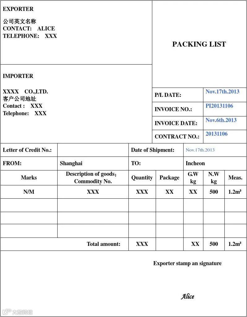 2. 箱单:包装明细,核心核对毛重、体积、每箱货物;