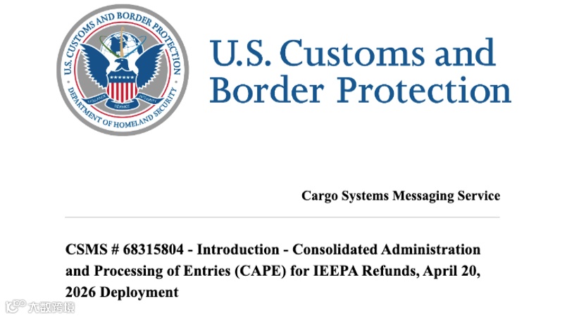美国海关与边境保护局(CBP)将于4月20日正式启用关税退款系统,向约33万家进口商退还依据《国际紧急经济权力法》(IEEPA)征收的1660亿美元"非法"关税。截至4月9日,5.6万家进口商已通过电子流程获退1270亿美元税款。