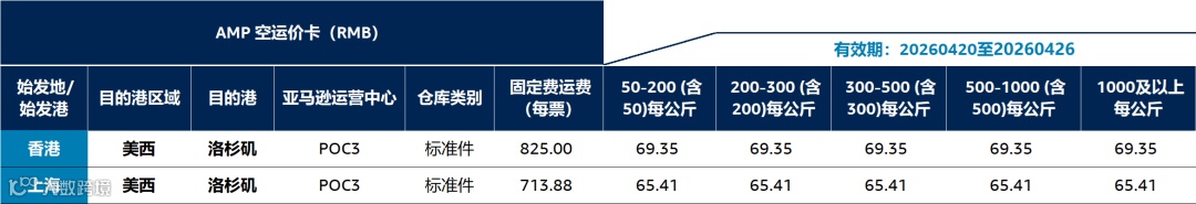 2)费用范围:含启运机场至亚马逊运营中心(FC)的跨境物流费。