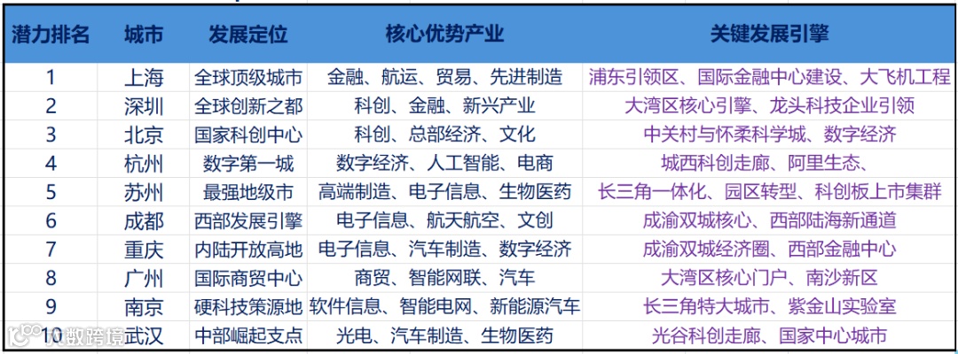 关键词:发展潜力 十强城市 优势产业 关键引擎 三大趋势