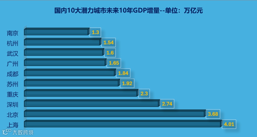 结合城市发展态势与全球趋势,筛选出未来十年国内最具发展潜力十大城市:
