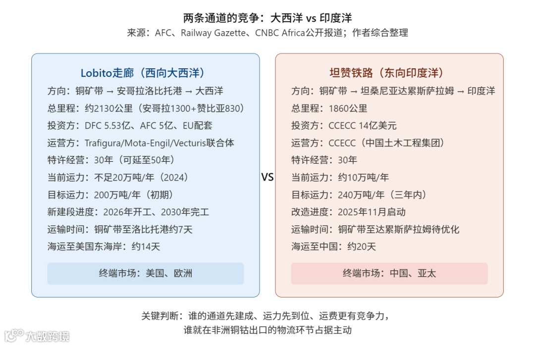该走廊将矿石运输周期从45天压缩至7天,实现直接通往美欧市场。其竞争焦点在于:中国2025年9月签约14亿美元坦赞铁路现代化项目(连接赞比亚至达累斯萨拉姆港),计划3年内货运量从10万吨提升至240万吨。双方争夺实质是大西洋与印度洋出口通道的竞争。