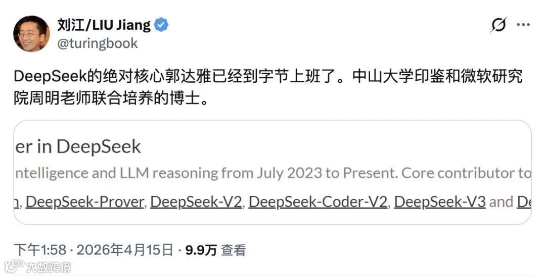 曝 DeepSeek 核心研究员郭达雅加入字节跳动