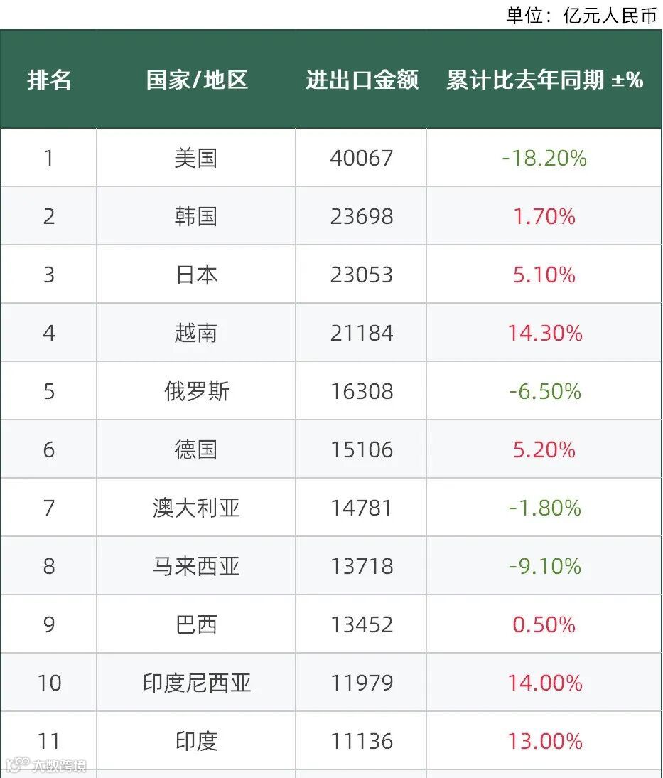 主要贸易伙伴榜单