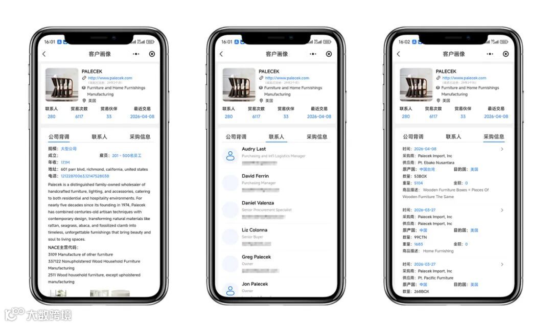 - 历史采购数据(产品、数量、周期及金额),精准评估采购实力;