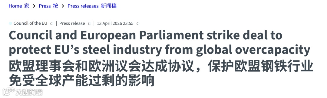 据壹航运消息,4月13日,欧盟理事会与欧洲议会就解决全球产能过剩影响的钢铁进口新规达成临时协议。