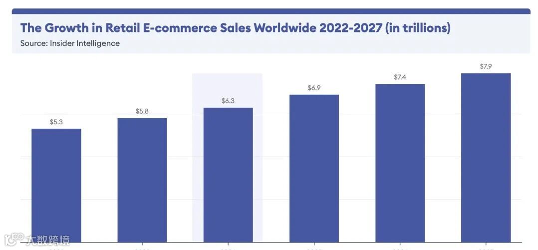 2024年全球电商市场规模预计达6.3万亿美元(2023年为5.8万亿美元),2027年将突破7.9万亿美元,年增速8.8%。市场持续增长的背后,是竞争逻辑的根本性转变: