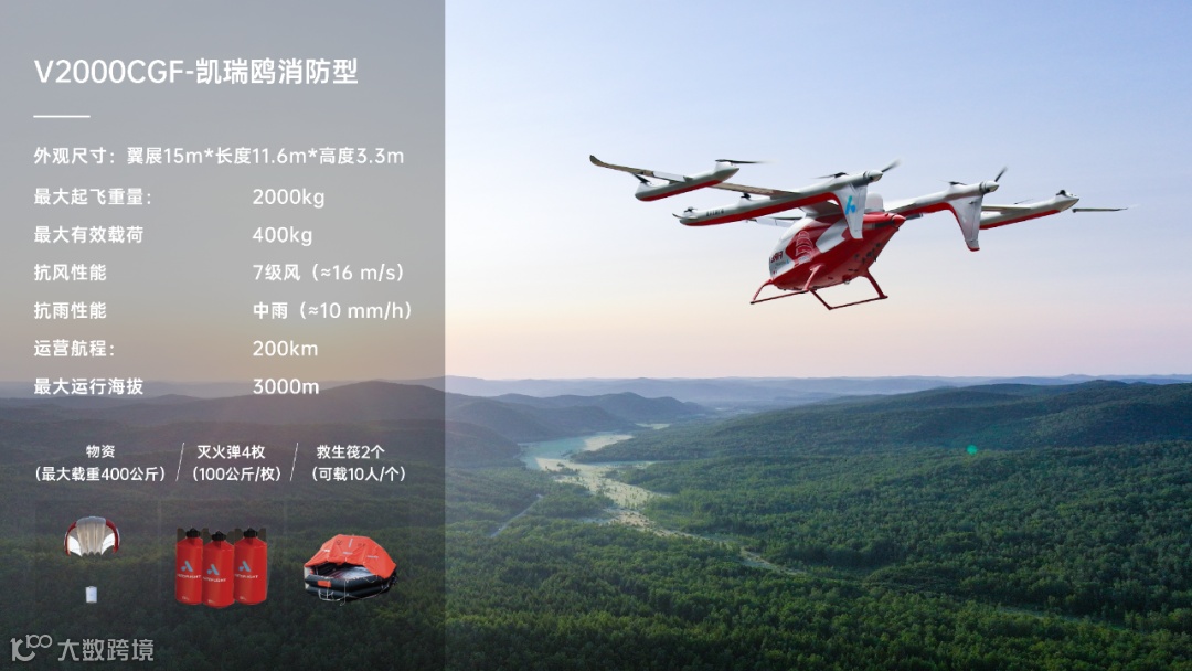 V2000CGF最大载重400公斤,航程200公里,无需机场跑道即可灵活部署。其抗7级大风(16m/s)、抗中雨(10mm/h)及成熟夜航能力,确保在贵州多雨雾、高海拔复杂地形中稳定作业,实现森林防火"风雨无阻、昼夜兼程"的应急保障目标。