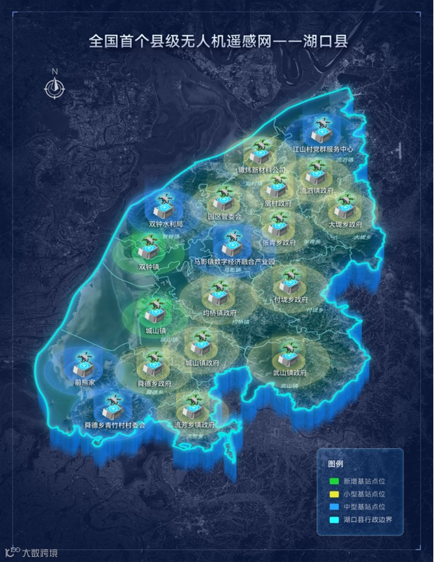 2023年6月,湖口县联合中科院、中国民航局低空地理信息及航路重点实验室等机构,部署19台智能基站与5架机动无人机,建成全域覆盖的低空遥感网。该系统通过自主飞行、智能识别和实时回传,实现自然资源、环保、应急等领域的高频次精准巡查。