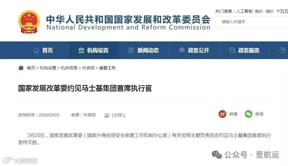 2024年3月9日,中国交通运输部发布公告,针对国际航运经营行为约谈马士基集团及地中海航运相关负责人。3月20日,国家发改委(国家外商投资安全审查工作机制办公室)再次约见马士基集团首席执行官柯文胜。