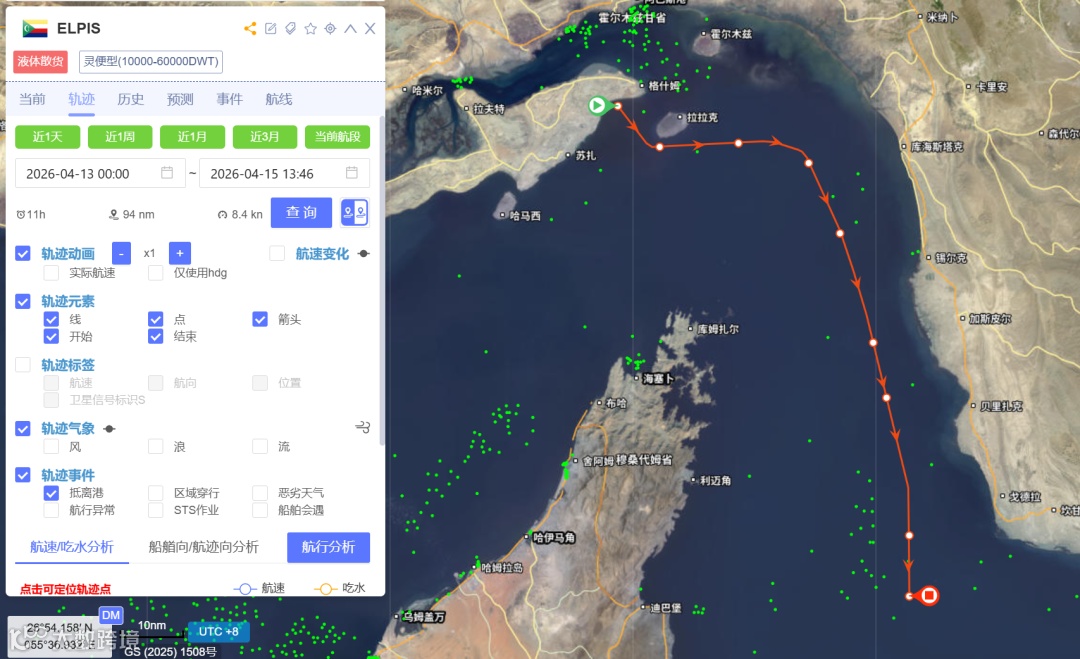 ▲“Elpis”轮航行轨迹,图源:船视宝
