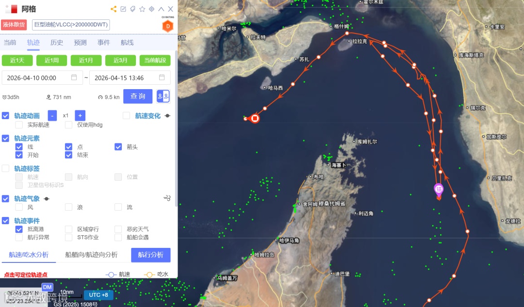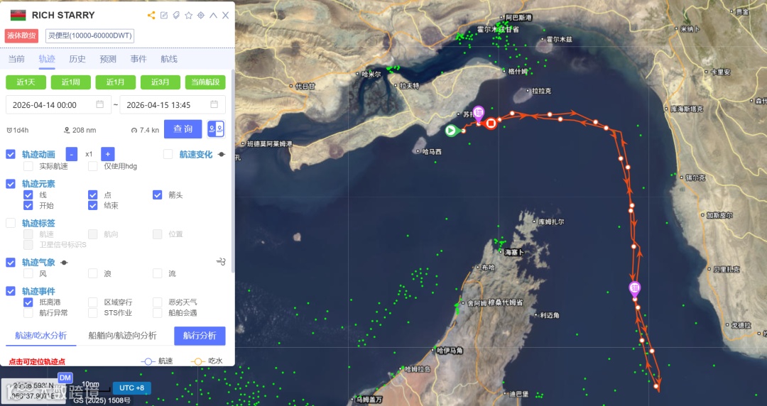 ▲“Rich Starry”轮航行轨迹,图源:船视宝