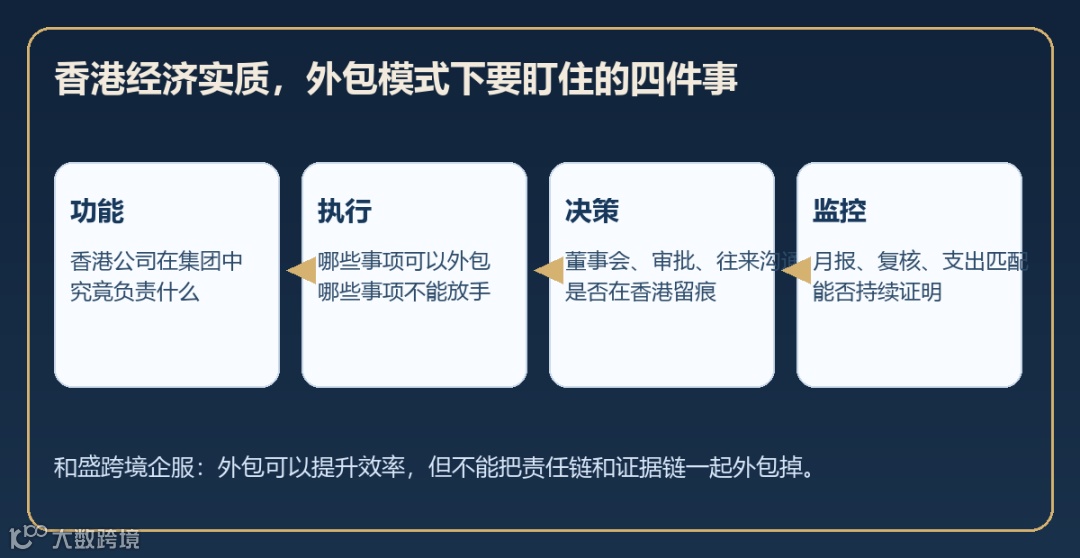 核心逻辑明确,当香港公司承担融资、控股等集团职能时,经济实质成为业务架构合规的底层支撑。