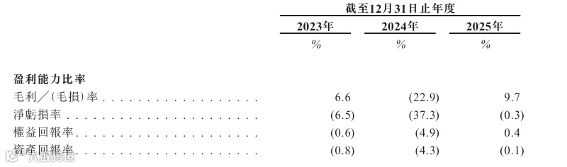2023-2025年毛利率分别为6.6%、-22.9%、9.7%,呈明显修复态势。