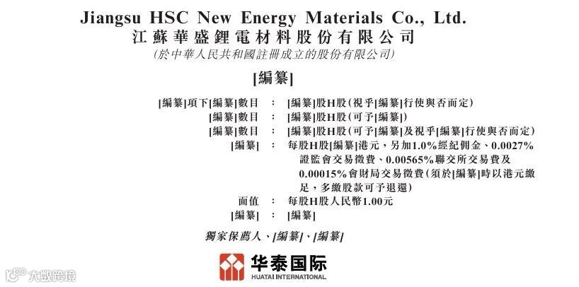 港交所4月15日披露,江苏华盛锂电材料股份有限公司(688353.SH)向主板提交上市申请,华泰国际担任独家保荐人。
