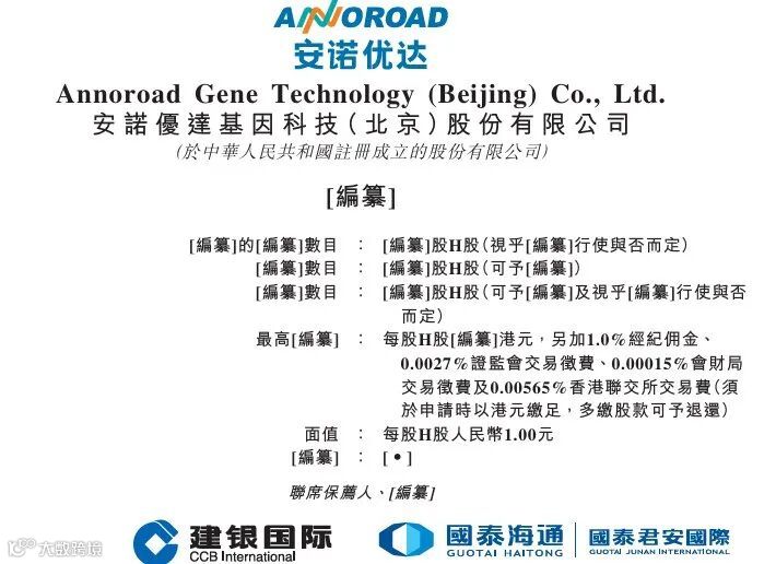 4月15日,港交所披露,安诺优达基因科技(简称:安诺优达)第三次向港交所主板递交上市申请,建银国际与国泰海通担任联席保荐人。