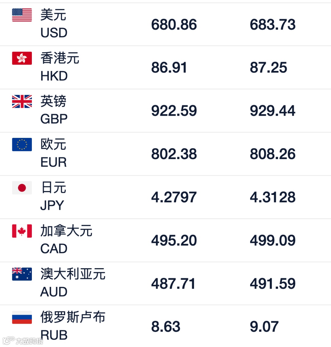 【今日汇率】