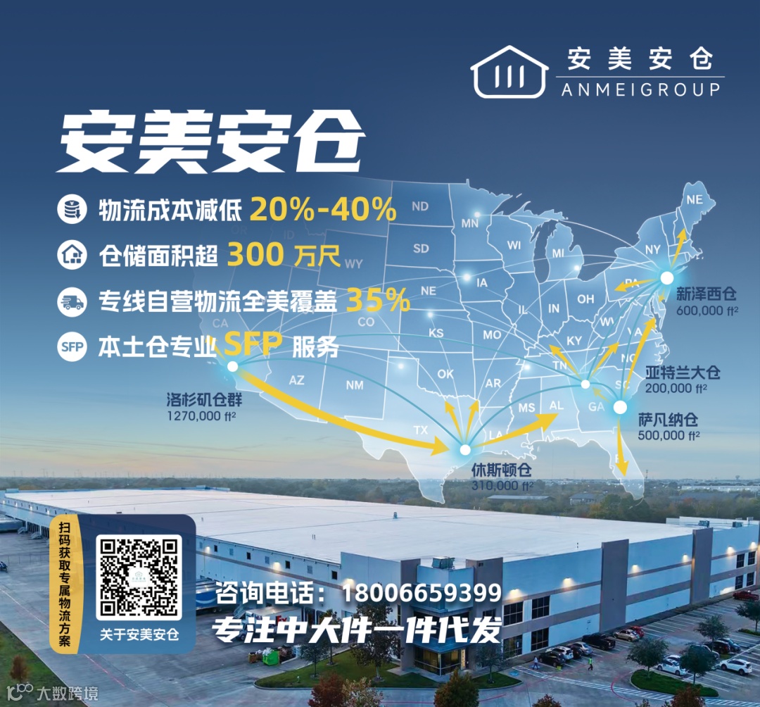 安美安仓已在美国东部、西部及南部建立五大自营海外仓群,合作仓库总面积超300万平方英尺,为跨境卖家提供覆盖全美的中大件商品仓储物流解决方案。