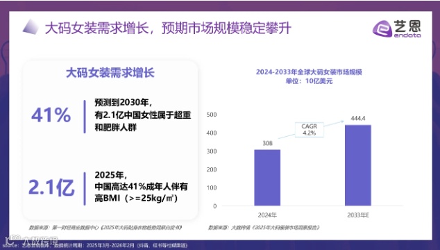 数据显示,中国超重及肥胖女性已达2.1亿,撑起800亿元大码女装市场,年增速13.2%,远超普通女装8.2%的增速——这不仅是小众风口,更是被长期忽视的全民刚需。