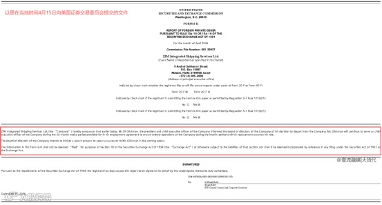 4月15日,以星航运(ZIM)向美国证券交易委员会提交文件,披露总裁兼首席执行官Eli Glickman已通知董事会决定离职。