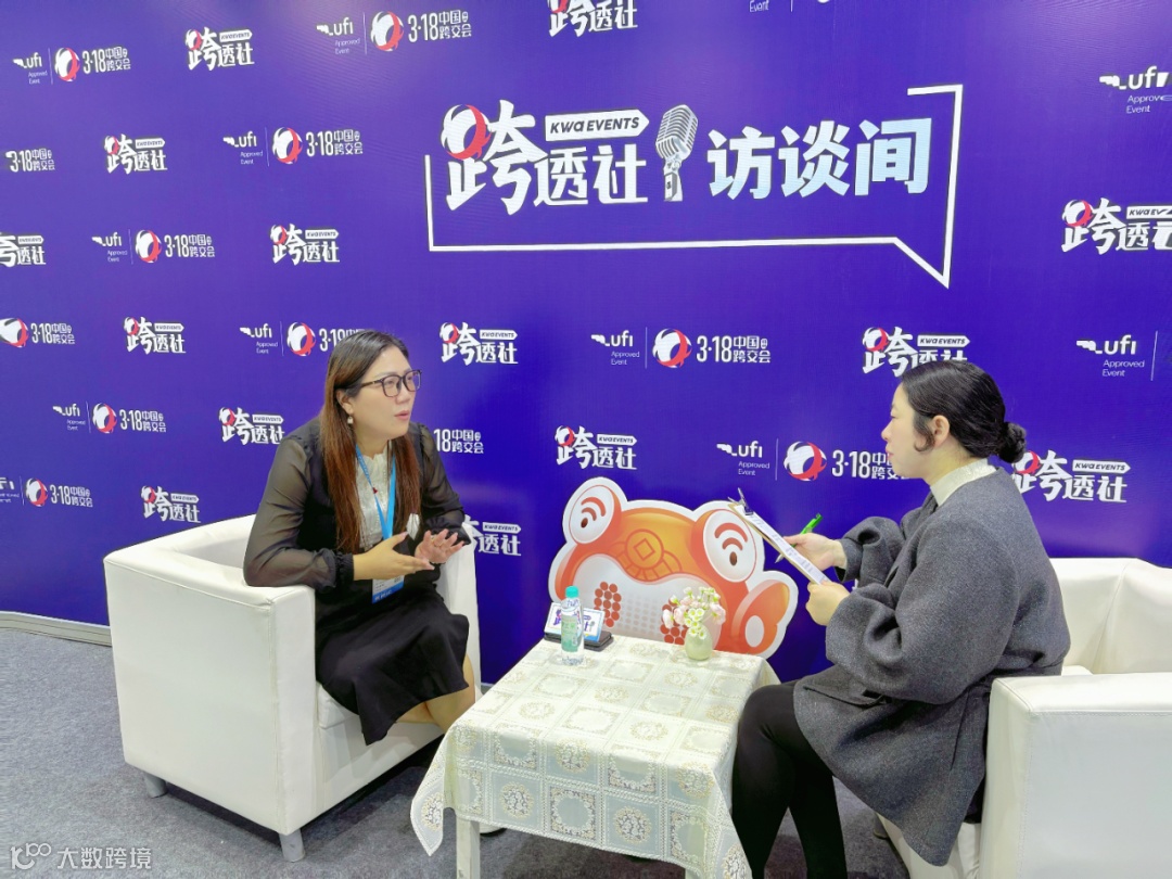 厦门骏琪箱包有限公司总经理洪于涵在展会"跨透社"访谈间接受采访时从容亲切。当谈及出海业务,她言语间透出行业深耕三十余年的坚定信心,展现出兼具亲和力与战略定力的企业家形象。