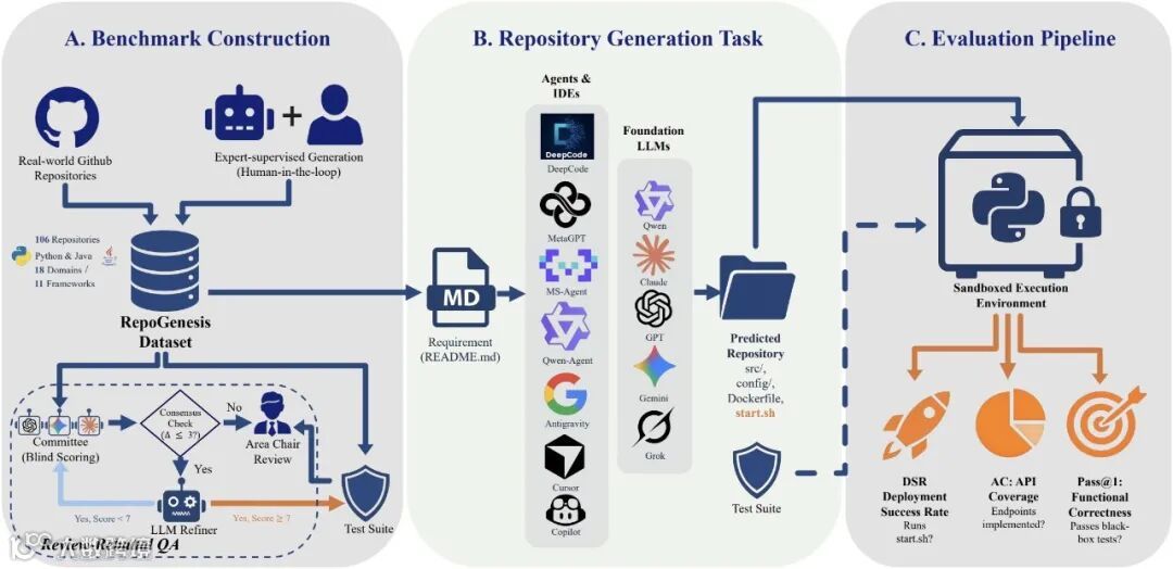 RepoGenesis的核心价值在于将"从文档到仓库"的工程实践转化为可复现、可量化评估的研发基准。这推动代码生成研究从概念验证迈向工程落地,为下一代Agent提供明确优化方向。