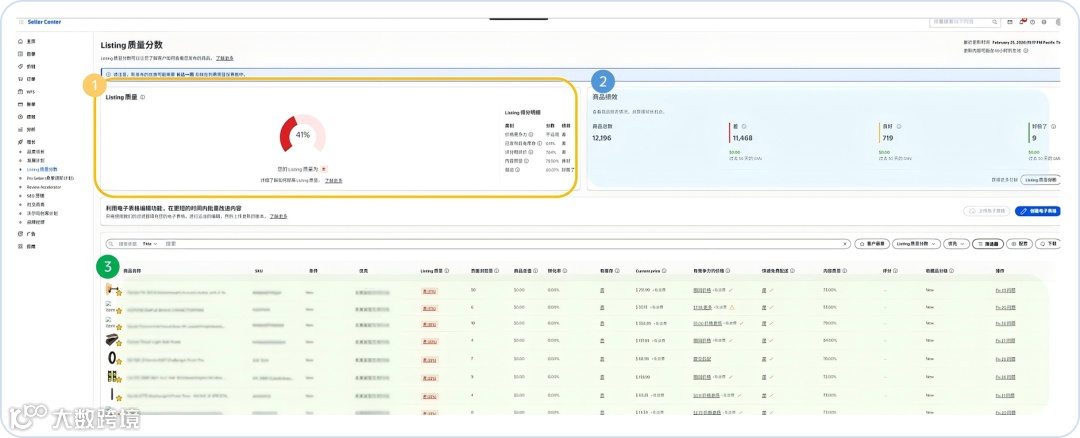 路径:卖家中心(Seller Center)→ 增长(Growth)→ Listing质量面板