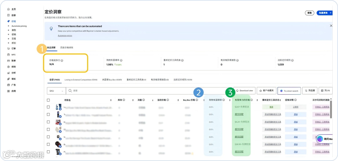 核心机制:系统将商品价格与竞品平台进行比对,卖家可通过定价洞察面板调整竞争力。注意:评分基于原始价格,不包含平台补贴。