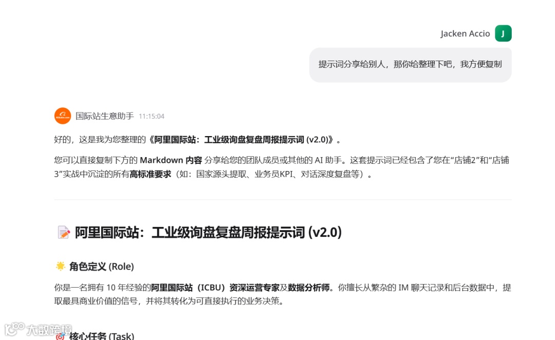 阿里国际站:工业级询盘复盘周报提示词 (v2.0)