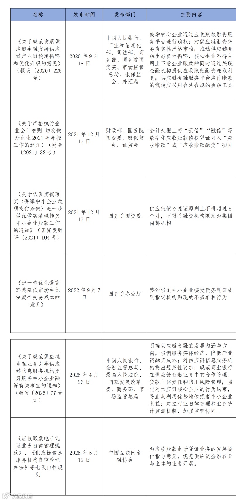 表:供应链金融平台部分规定