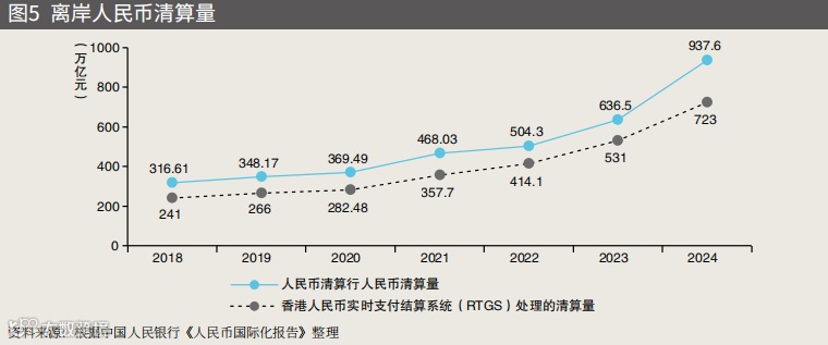 二元格局突出:香港处理全球近80%离岸人民币支付,2024年离岸人民币总存款余额达1.6万亿元;境内试点区域以FT账户、EF账户为核心,2024年上海FT账户跨境收支达1.33万亿元。