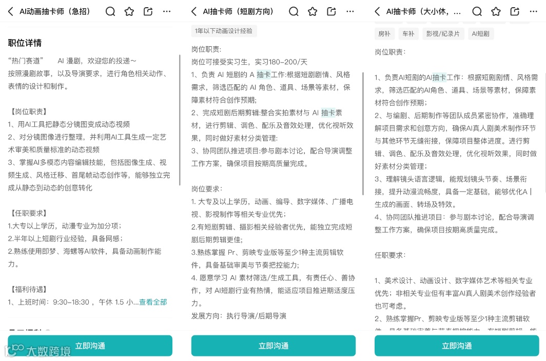 继数据标注员后,AI领域又一新型流水线岗位兴起——AI抽卡师(部分公司称动画师),已在招聘市场公开招揽从业者。该岗位核心职责为根据剧本生成AI视频,操作门槛较低,无需专业背景,但实际工作内容高度重复。
