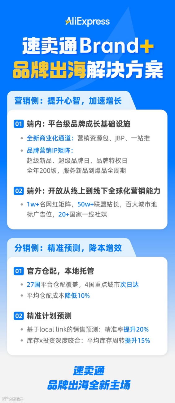 基于阿里20年电商经验,“Brand+”计划通过营销与分销双轮驱动解决品牌出海痛点。营销端构建全链路心智提升方案:整合平台内200场年度活动及50万海外联盟站长、1万名网红矩阵;分销端在27国实现仓配覆盖,4国重点城市提供次日达,降低10%仓配成本,助力商家精准备货。计划针对不同层级品牌提供差异化支持,国际大牌享深度履约,潜力市场享AI托管降门槛。