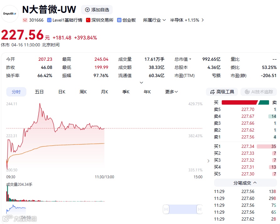 4月16日,大普微(股票代码:301666)在深圳证券交易所创业板正式上市,成为创业板第三套上市标准启用后首家未盈利上市企业。新规允许预计市值不低于50亿元且年营收不低于3亿元的企业登陆A股,此举标志着资本市场告别“唯利润论”时代。上市首日股价上涨393.84%,市值定格在992.65亿元。