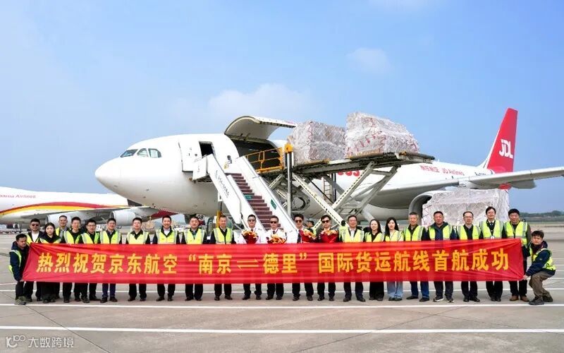 4月15日,一架满载“中国制造”商品的全货机从南京禄口国际机场起飞,飞往印度德里,标志着“南京—德里”国际全货机航线正式开通并完成首航。该航线成为南京临空经济示范区与京东航空合作开通的第3条国际货运航线,也是京东航空引进的首架A330全货机在南京禄口机场的首航。