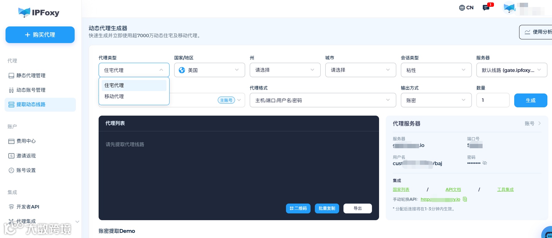 使用IPFoxy等专业全球住宅代理服务,获取目标国家的真实住宅IP。住宅IP比数据中心IP更接近真实用户,不会被广告平台或风控系统拦截。IPFoxy提供的动态住宅IP类型,可以支持自动化验证的无限轮换要求,更适合在此场景下帮助规避广告平台的防爬虫机制。