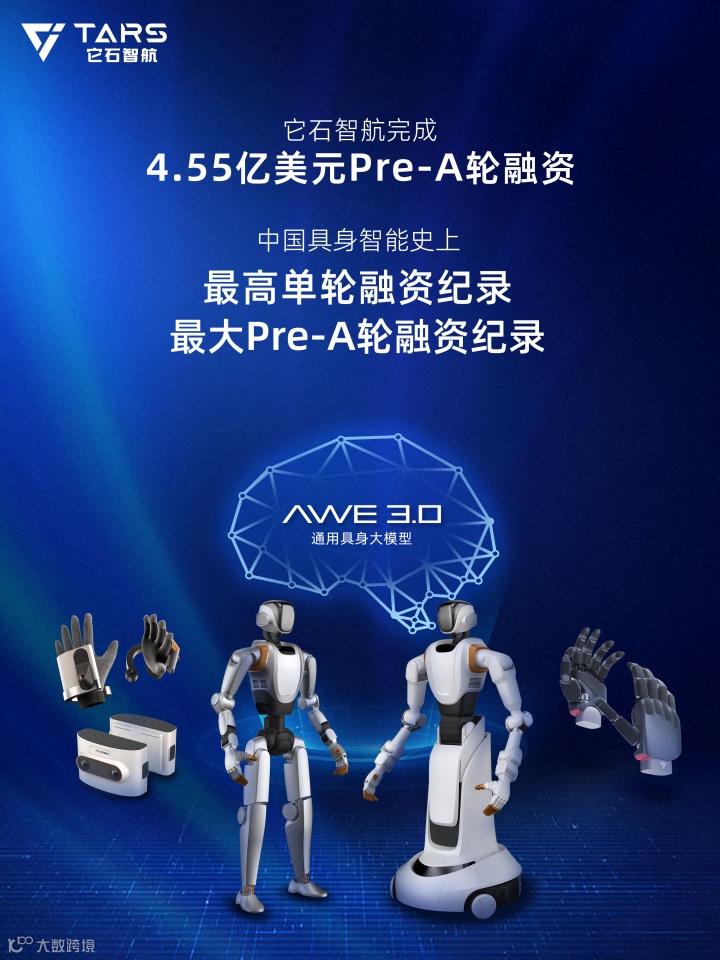 投资界获悉,今日(4月16日),它石智航正式宣布完成4.55亿美金Pre-A轮融资,创下中国具身智能有史以来最高单轮融资纪录和最大Pre-A轮融资纪录。