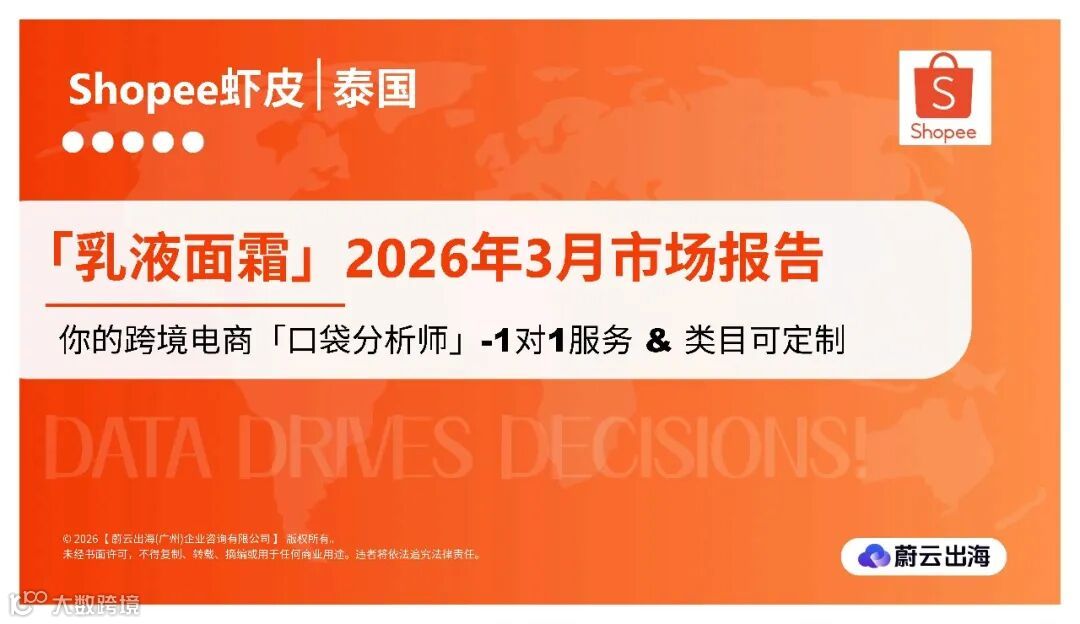 基于蔚云出海《泰国_Shopee虾皮_2026年_乳液面霜_3月市场动态报告》,对2026年3月泰国Shopee平台“保湿乳液、乳霜”类目的核心市场动态总结如下: