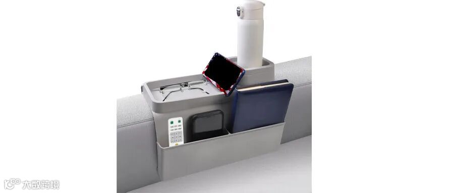 它从用户行为出发,把收纳放在最顺手的扶手位置,用人体重量实现免安装固定,通过多口袋分区优化收纳逻辑,增设杯架解决饮水需求,再用柔性面料适配所有沙发。