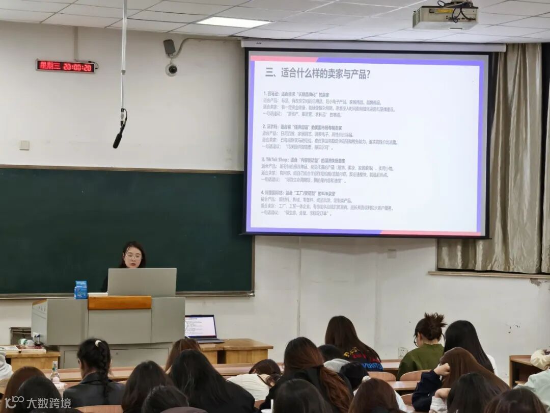“跨境电商不只是卖货,它是一套完整的商业体系。”课程现场拆解了运营、选品、物流、广告、客服五大热门岗位,并通过物流专员与社媒运营专员的“一日工作流程模拟”,让同学们直观感受每个岗位的真实日常。